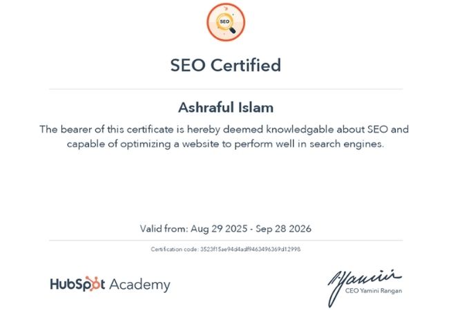 I’m Ashraful Islam, a SEO Specialist focused on helping service-based businesses rank on Google and generate real leads.